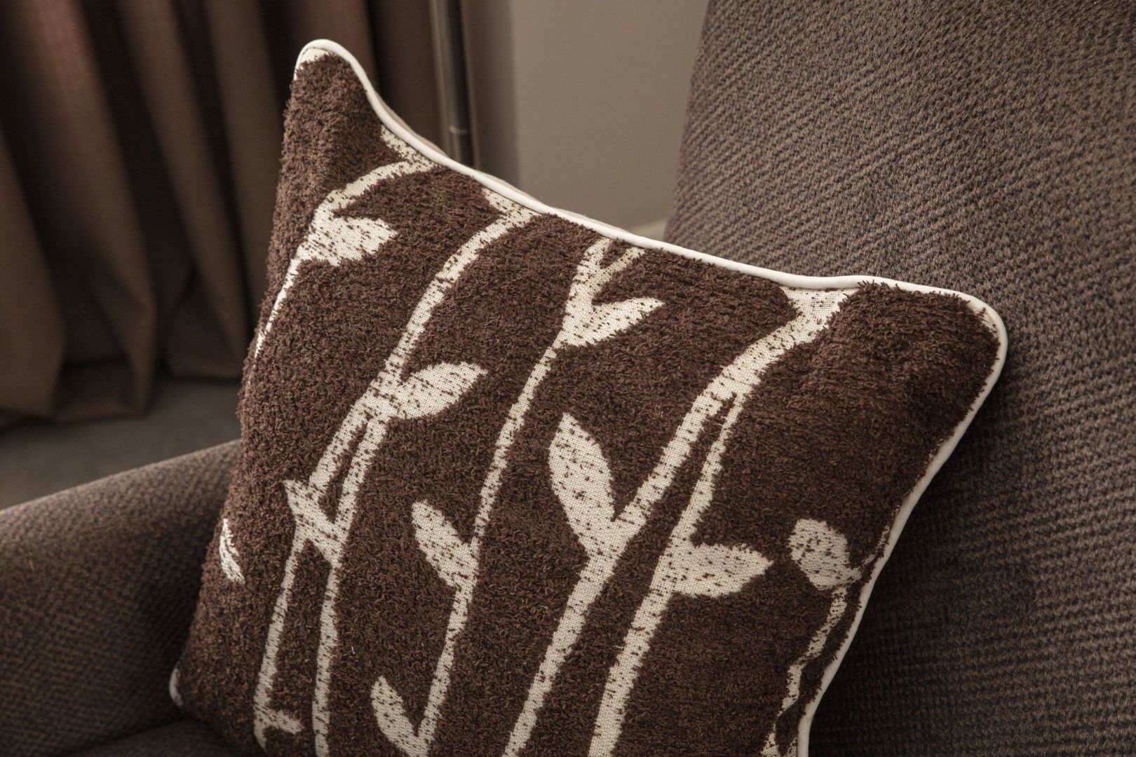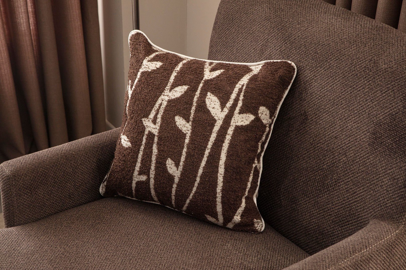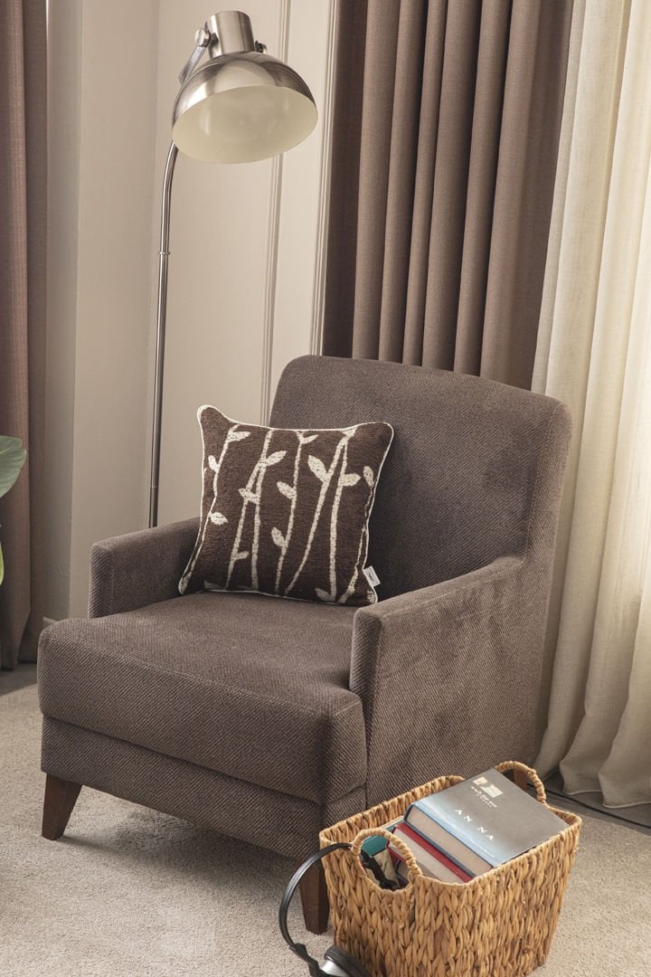 Biye Detay Bambu Desenli Keten Dokuma Kırlent Kahverengi bambukahve