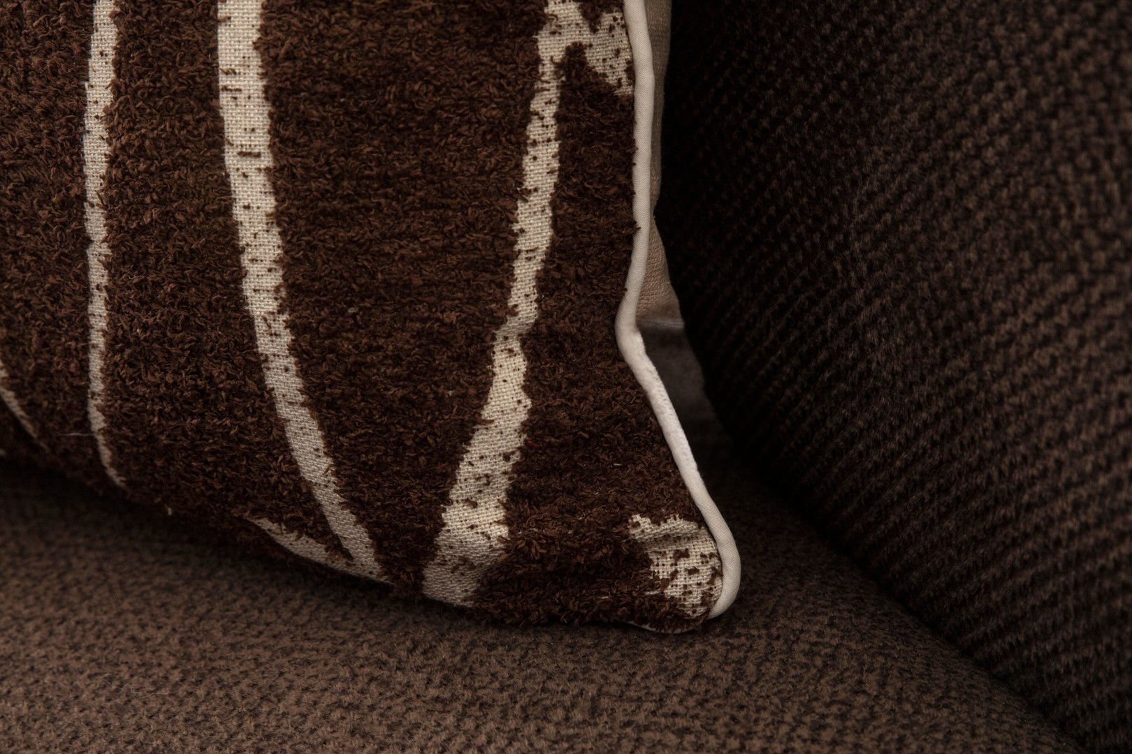 Biye Detay Bambu Desenli Keten Dokuma Kırlent Kahverengi