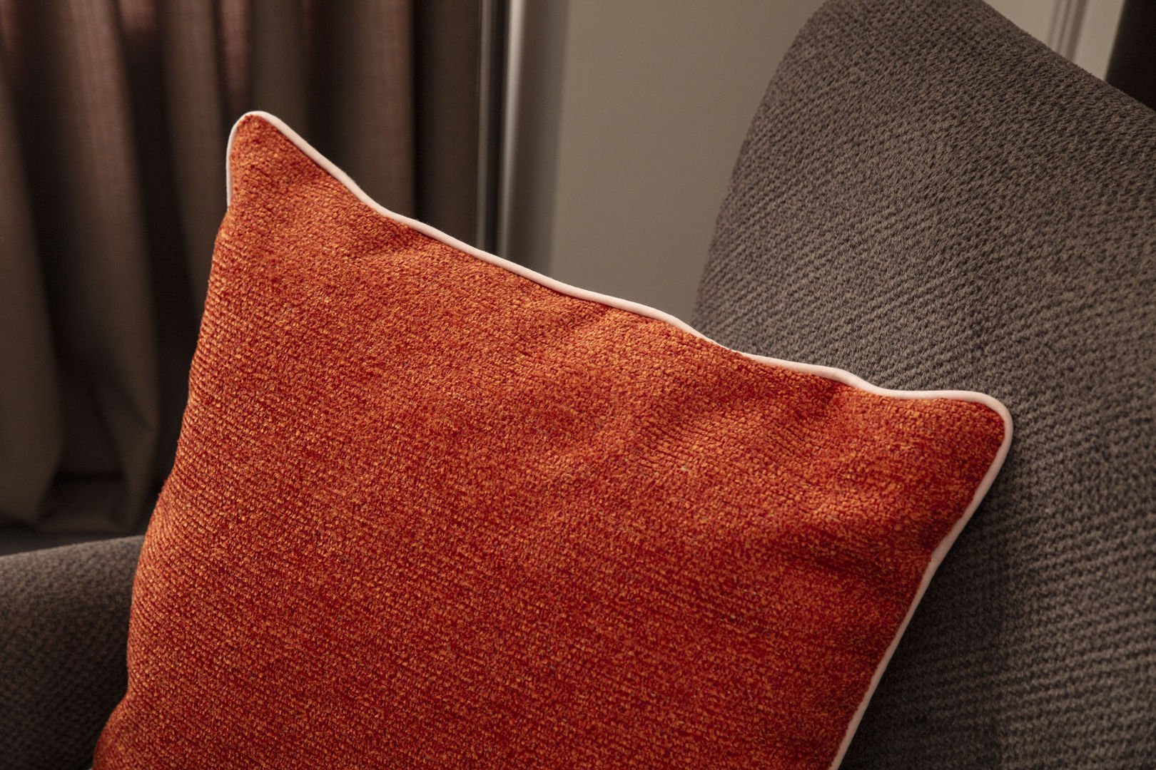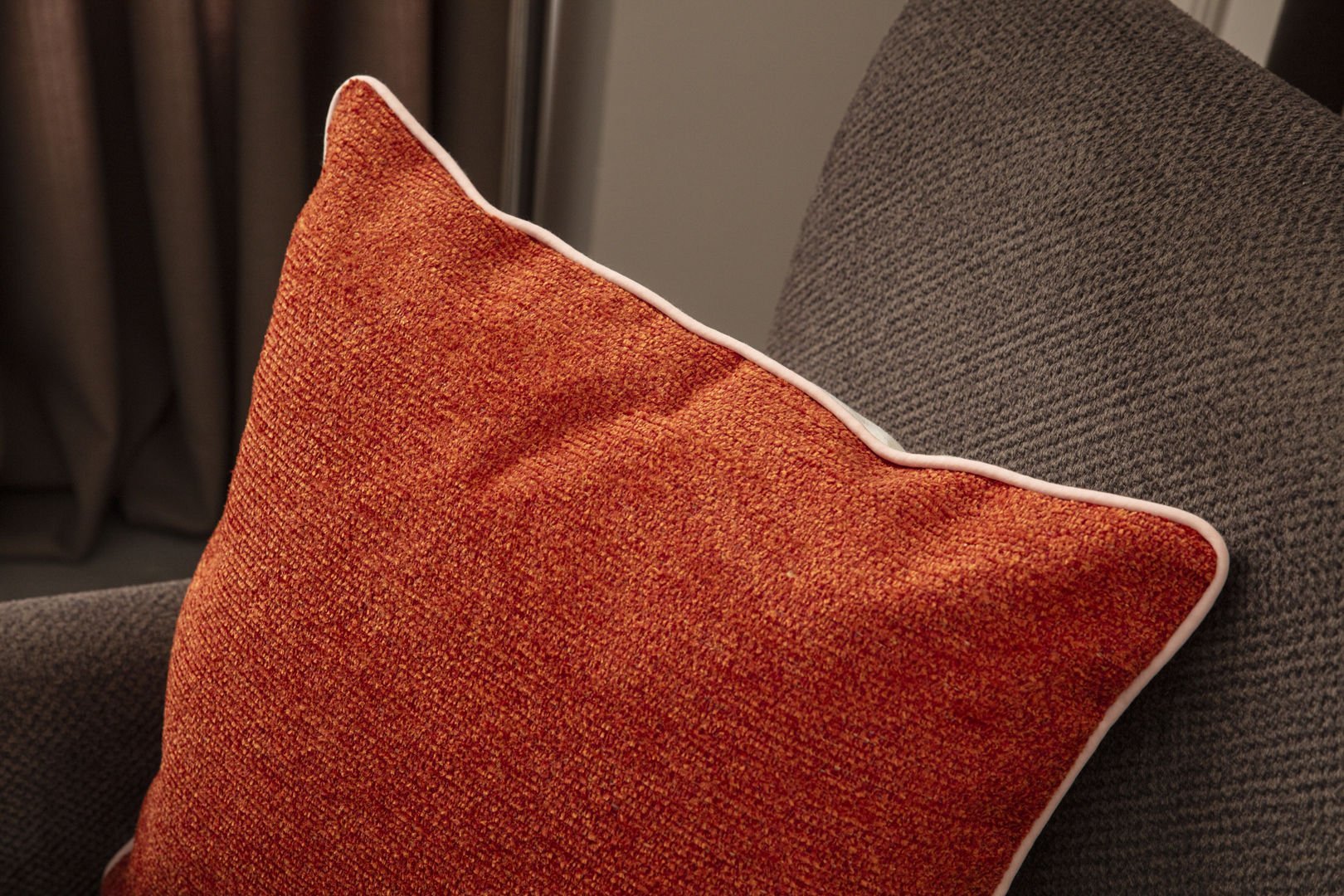 Biye Detay Cozy Dokulu Tüylü Keten Dokuma Kırlent Turuncu cozyturuncu