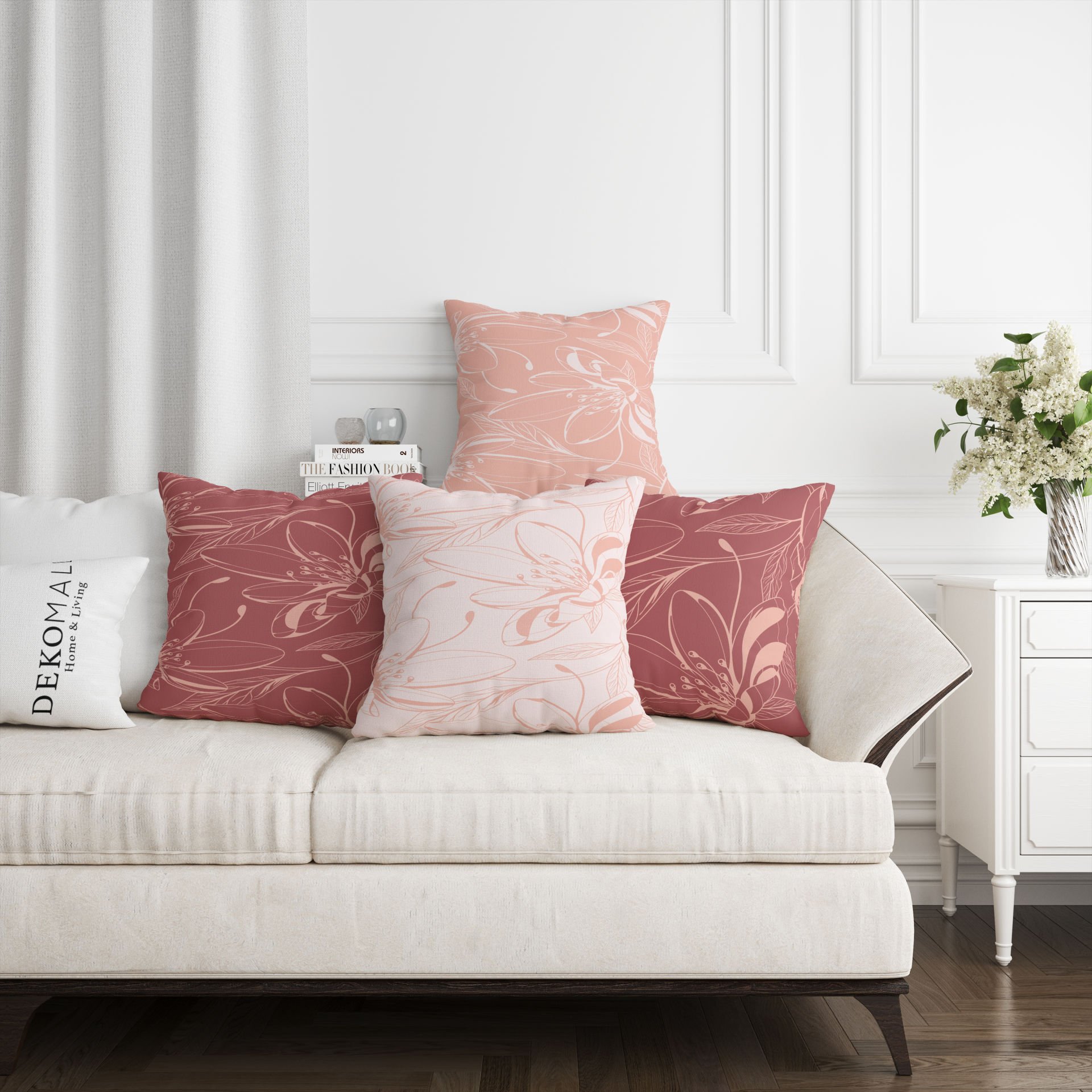 Çift Taraflı Morandi Renkli Çiçekler 4'lü Kırlent Kılıfı 437 dkml-kk437
