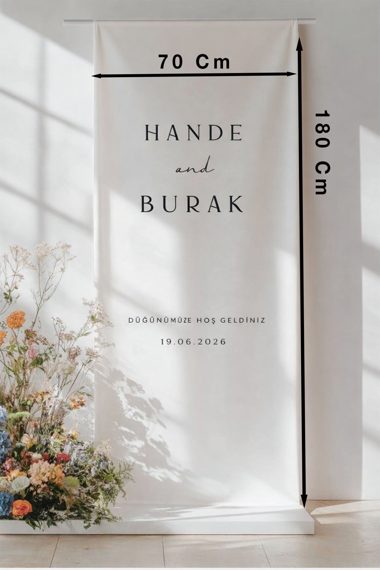 Kişiye Özel Kanvas Karşılama Panosu 70 x 180 Cm-001 Kişileştirilebilir,Düğün Söz Nişan Kına Parti Flama