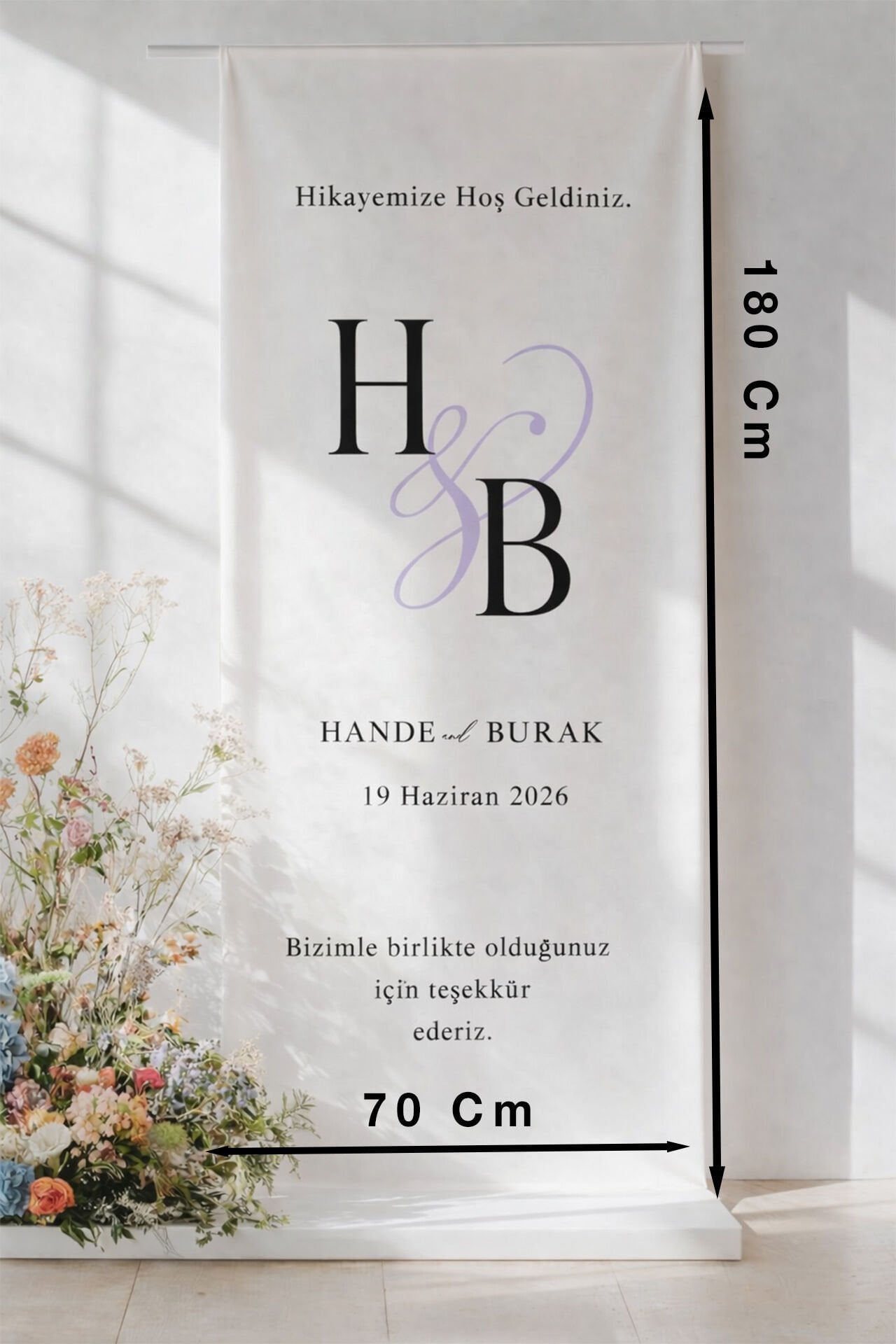 Kişiye Özel Kanvas Karşılama Panosu 70 x 180 Cm-002 Kişileştirilebilir,Düğün Söz Nişan Kına Parti Flama