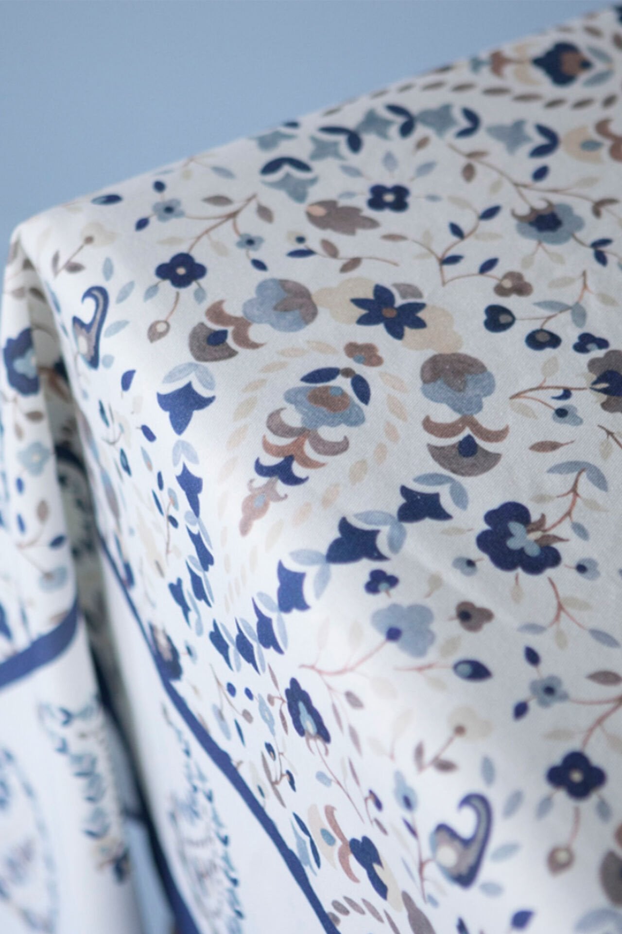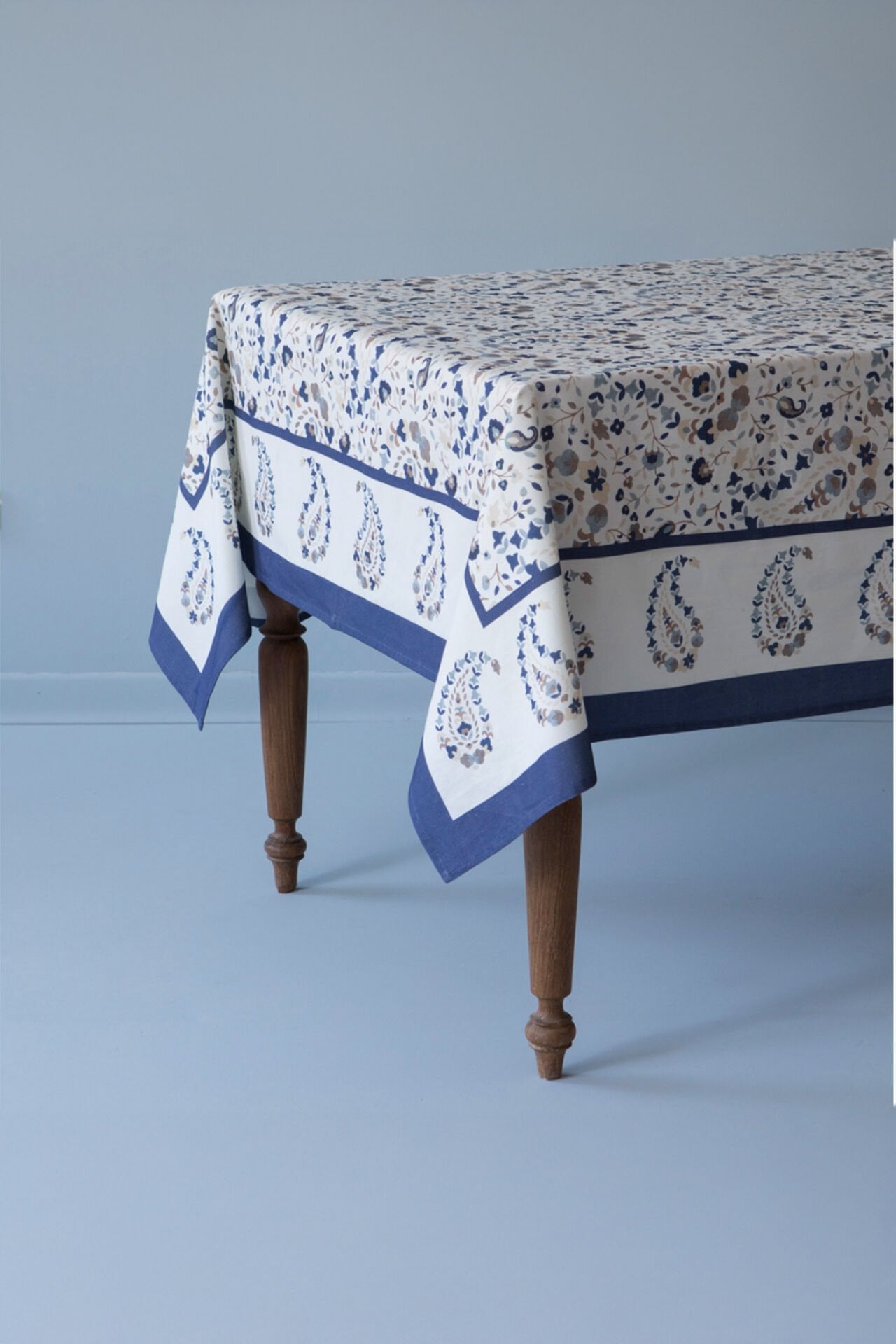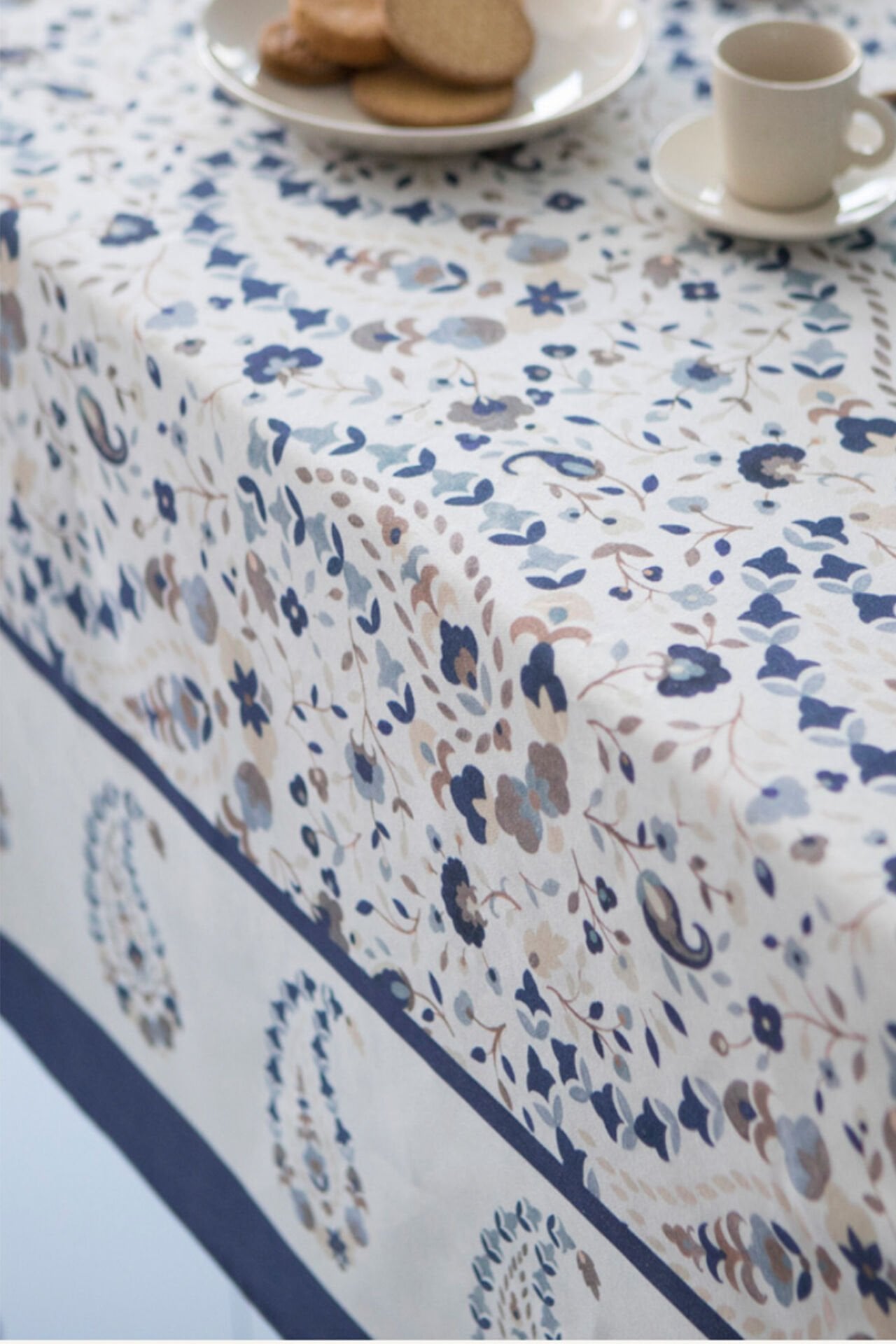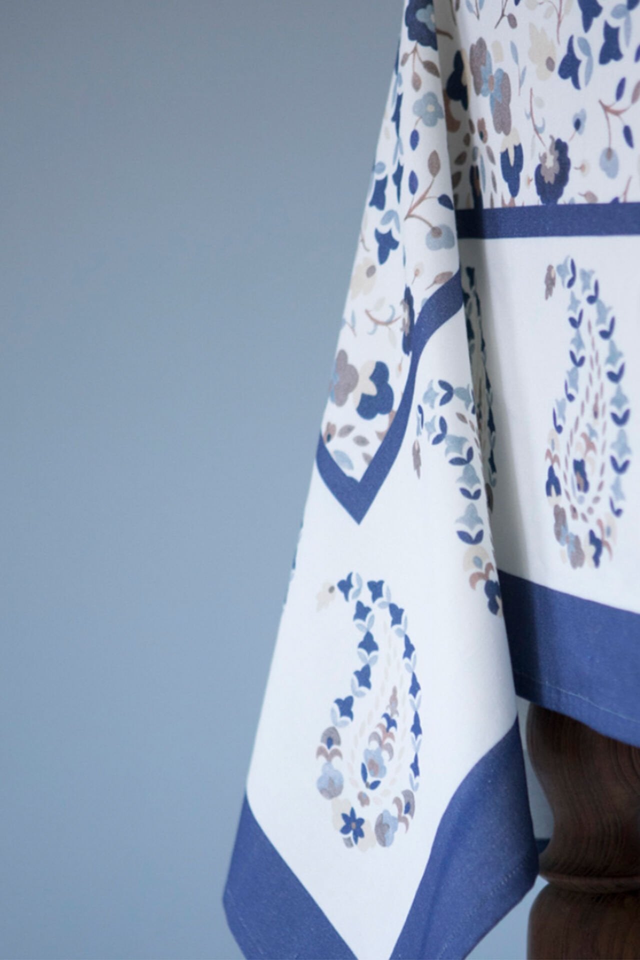 Mavi Bordürlü Paisley Pamuklu Masa Örtüsü-MSOR012