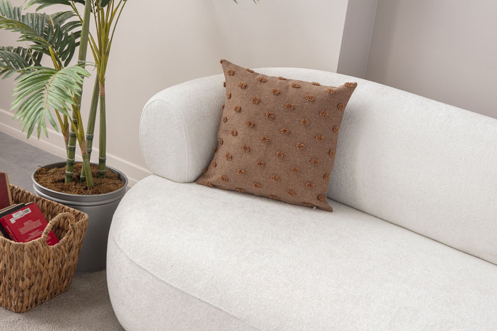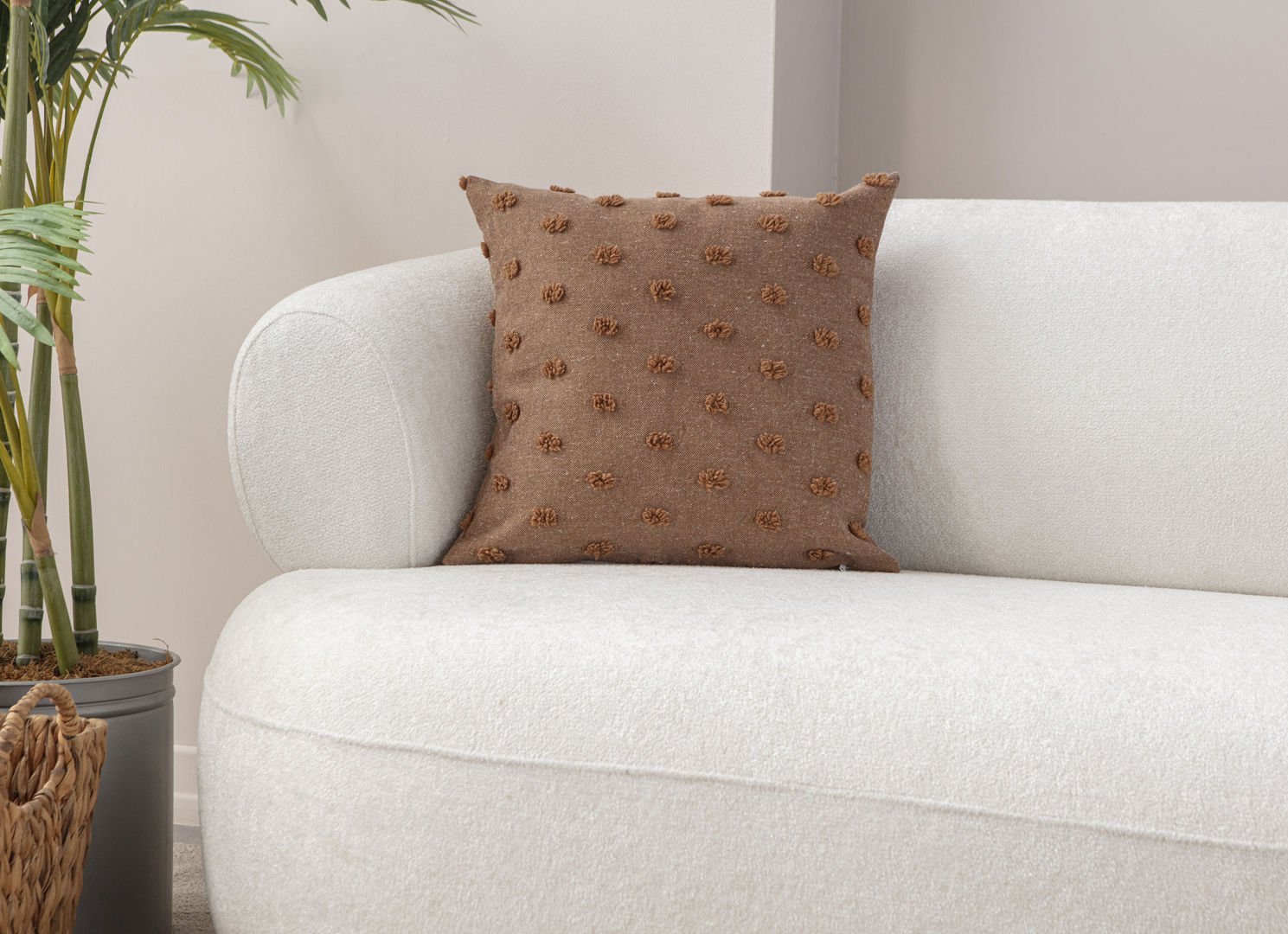 Puantiyeli Keten Dokuma Kırlent Kahverengi puantiyekahve