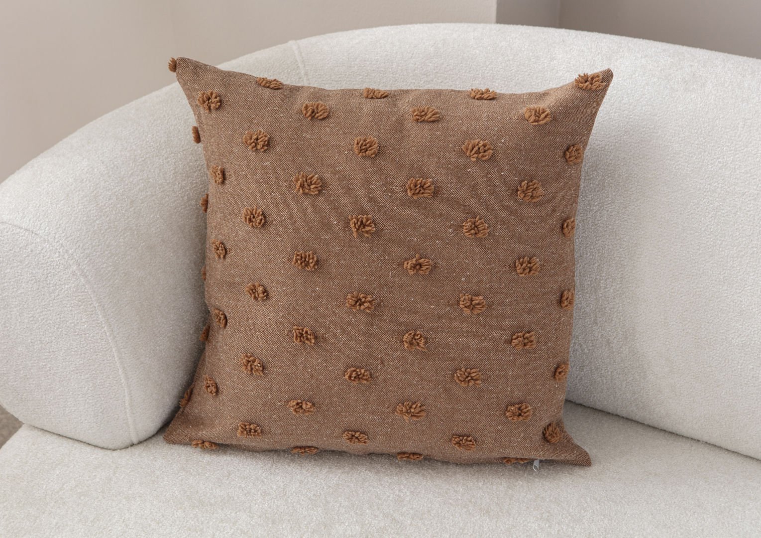 Puantiyeli Keten Dokuma Kırlent Kahverengi