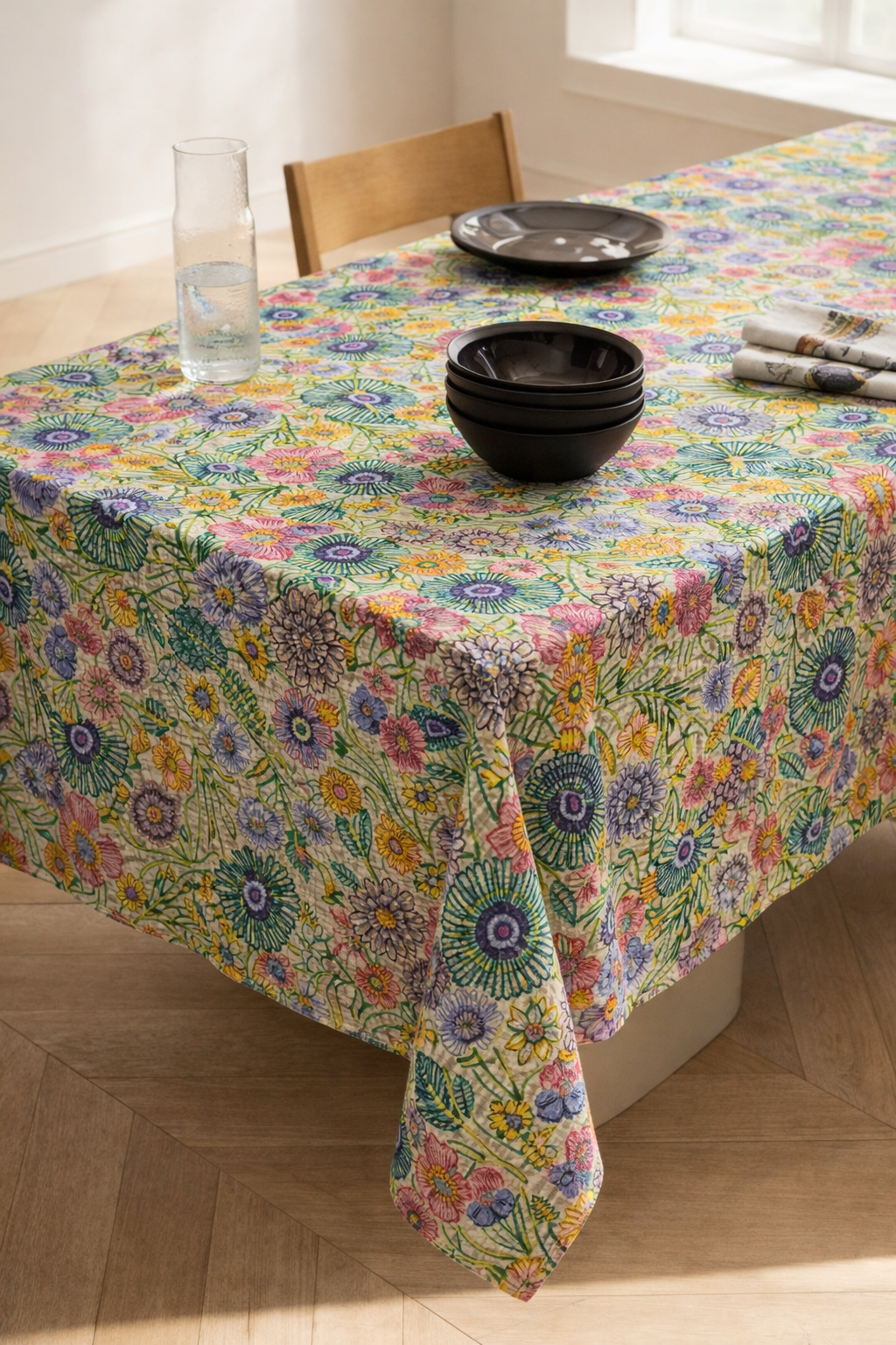 Renkli İlkbahar Çiçekleri Pamuklu Masa Örtüsü-MSOR017
