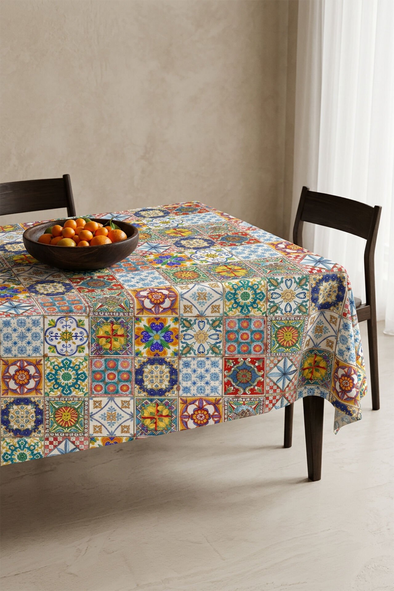 Renkli Karolar Pamuklu Masa Örtüsü-MSOR006