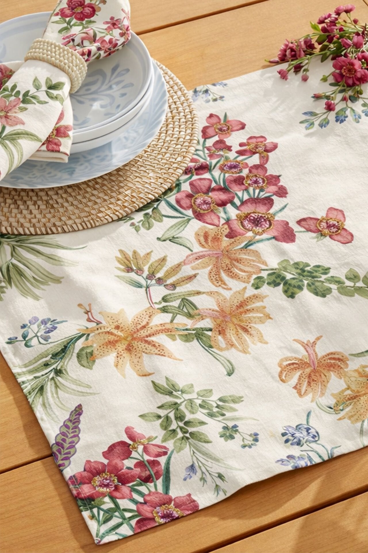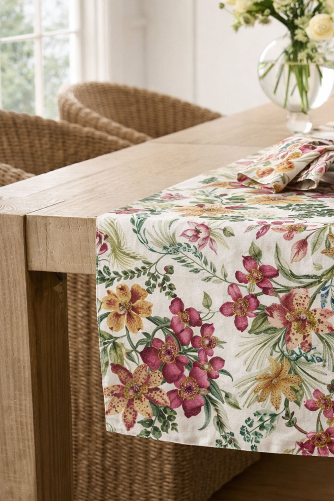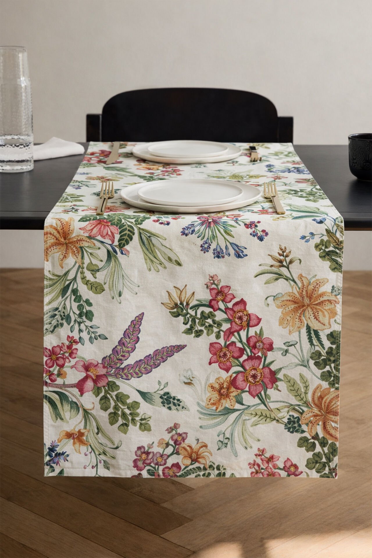 Renkli Orkideler Pamuklu Runner 50*150 Cm-RUNR018