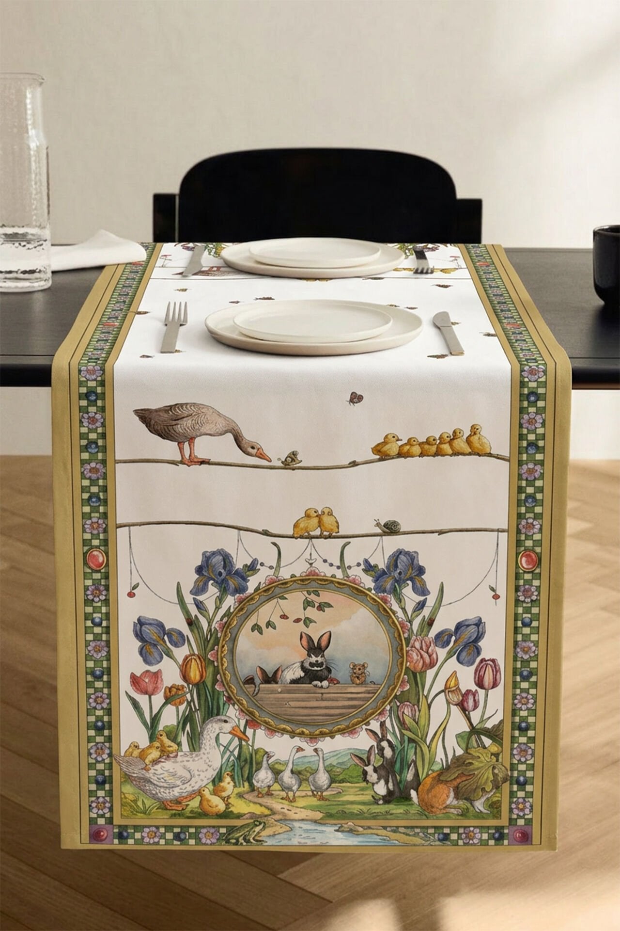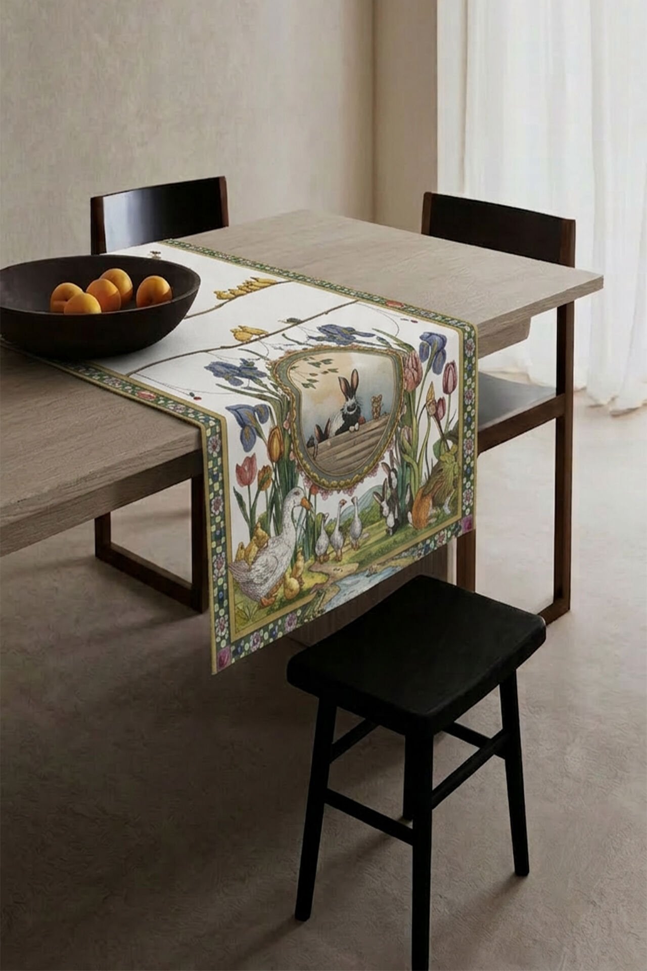 Tavşan Bahçesi Pamuklu Runner 50*150 Cm-RUNR005